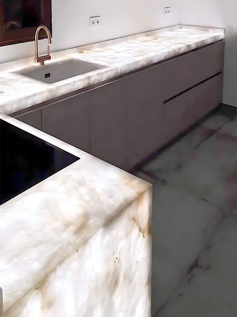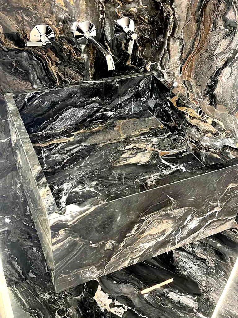 Podemos realizar prácticamente cualquier proyecto en el que intervengan materiales pétreos, también piedra en combinación con otros materiales (p.ej. madera o metal), ya sea para instalaciones interiores o exteriores.