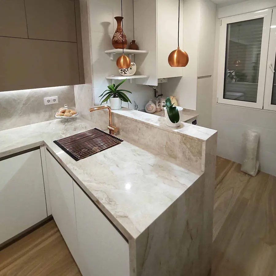 Somos capaces de ejecutar el canto ingleteado de manera perfecta en todo tipo de materiales pétreos.