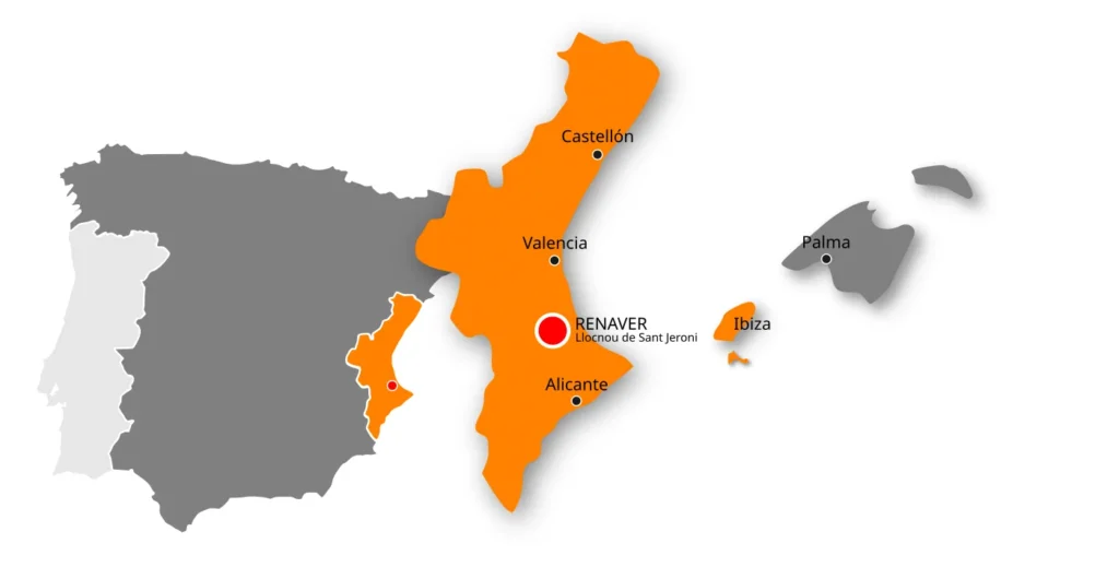 Cobrim tota la península, però la Comunitat Valenciana i Eivissa (les Illes Balears) és la nostra zona principal.